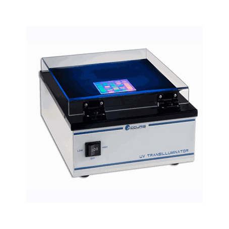 E3000紫外透射仪. E3000采用节省空间的设计,宽度仅为10.5英寸. 不过, 16x19厘米的紫外观察表面尺寸可容纳大型凝胶或多个较小的凝胶. 照明表面由特殊的黑色玻璃组成, 易于清洁, 经久耐用且不易刮伤. 由4个高强度紫外灯泡组成的阵列加上优化的滤光片, 可在整个观察面上提供均匀的照明, 并可检测少量样品. 双强度开关可将紫外线强度降低到50%, 以减少长时间曝光对DNA造成的损伤; 也可切换到高强度, 以观察微弱的荧光信号或进行照片记录.